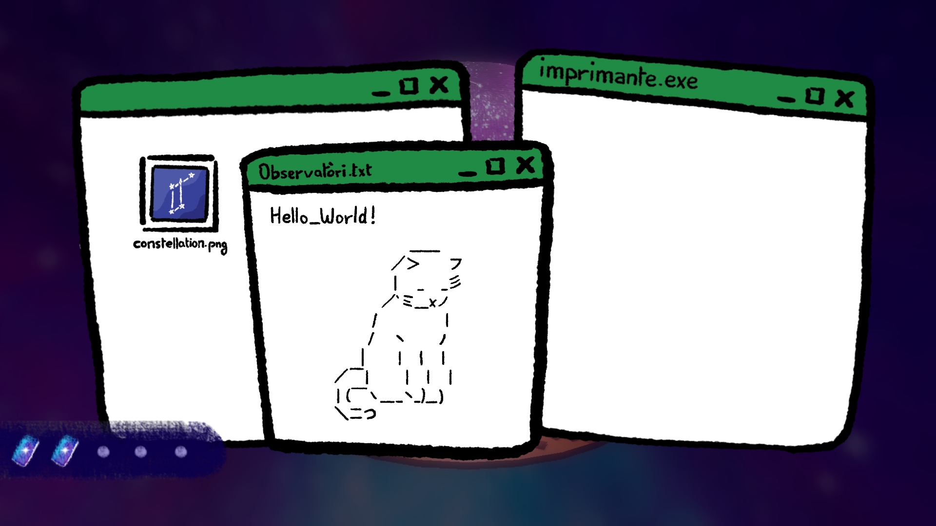Ce jeu est un prototype réalisé sur Godot en trois semaines. Nous sommes au courant d'un bon nombre de bugs et de dysfonctionnements, mais n'hésitez pas à remonter les problèmes rencontrés en essayant le jeu.