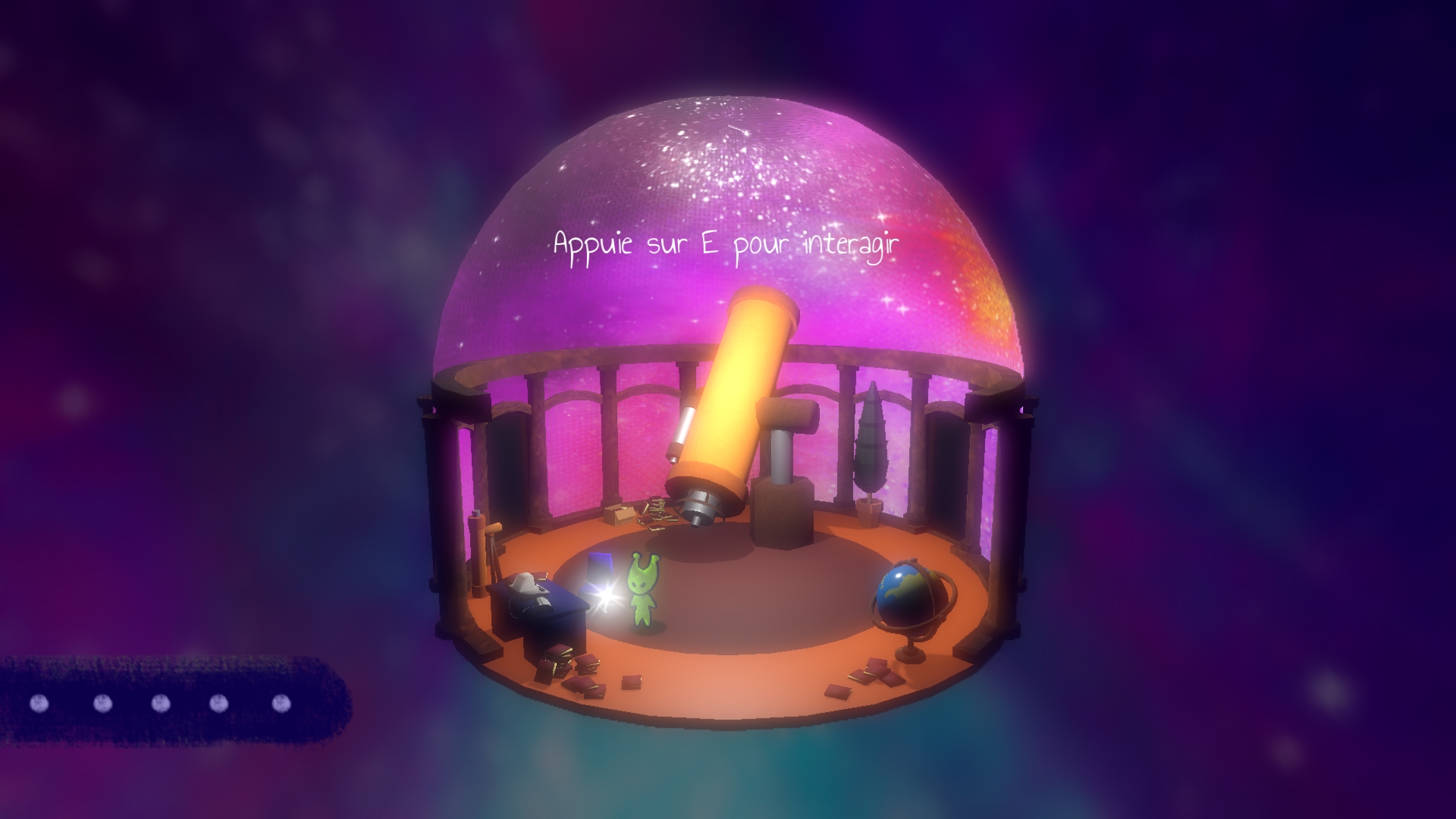 Le petit alien Xenu se retrouve dans un observatoire astronomique. Dans le télescope, les étoiles brillent, il semble possible d'y observer le ciel, mais vous n'y avez pas encore accès. Des cartes à l'effigie de constellations sont réparties cachées dans l'observatoire et déblocables avec des mini-jeux et casse-têtes. Une fois les cartes est débloquées, il faut trouver les étoiles les plus brillantes et redessiner les constellations que vous possédez. Quand l'une d'entre elle est complète, le nom s'affiche et vous pouvez chercher les constellations restantes. Le jeu devient alors une petite encyclopédie spatiale à compléter à son rythme !
