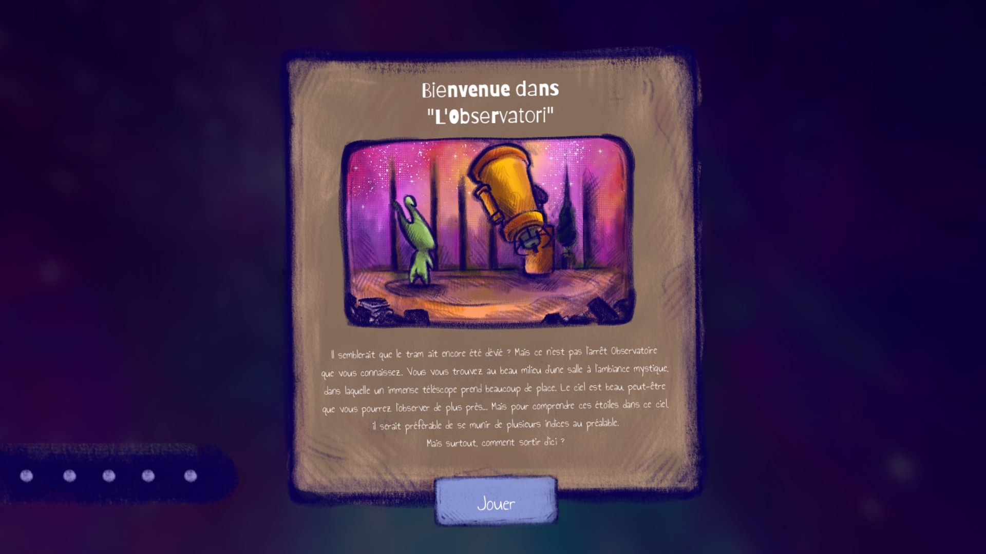 Observatori is a reference to the tram station "Observatoire" in Montpellier/France. It's also a reference of the local dialect : Occitan. Observatori is the Occitan's name of the station. We wanted to share our local culture while sharing our passion for constellations. This game is only available in french for now but it may be translated in occitan/english one day.
